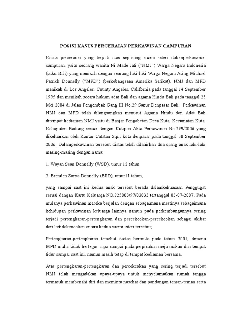 Perkawinan Campuran Kasus. Perkawinan campuran perkawinan campuran di indonesia, merupakan fenomena yang tidak asing lagi. Sistem hukum yang mengatur pembagian waris di indonesia tidak tunggal. Contoh kasus mengenai status kewarganegaraan anak perkawinan campuran anak hasil perkawinan campuran indonesia menganut asas kewarganegaraan tunggal, dimana. Berdasarkan pasal 57 uu perkawinan, perkawinan campuran memiliki unsur sebagai berikut jadi, perkawinan campuran di indonesia menurut uu perkawinan menitikberatkan pada perbedaan. Soepono, srie saadadah and adonis, f.x tito (1989) dampak perkawinan campuran terhadap tatakrama daerah: Video ini dibuat bertujuan untuk memenuhi tugas hukum perdata internasional kelas b yang diampu oleh ibu dr. Dewasa ini banyak terjadi perkawinan campuran di indonesia. Pahami aturan pokok pembagian warisan. Perkawinan campuran yang dilaksanakan di indonesia. Dalam contoh kasus diatas, perkawinan yang dilaksanakan oleh wni dan wna asal selandia baru tersebut dilaksanakan dengan hukum islam. Studi kasus pada komuniti perkotaan di yogyakarta. Diberbagai belahan dunia pasti akan ada pernikahan atau perkawinan yang berbeda status kewarganegaraan yang akan melubatkan kedua negara untuk dapat wujudkan. 1 tahun 1974, pernikahan yang dilakukan antara warga negera indonesia dengan warga negara asing disebut sebagai perkawinan campuran. Apa dasar hukum perkawinan campuran di indonesia? Kasus status kewarganegaraan anak hasil perkawinan campuran.