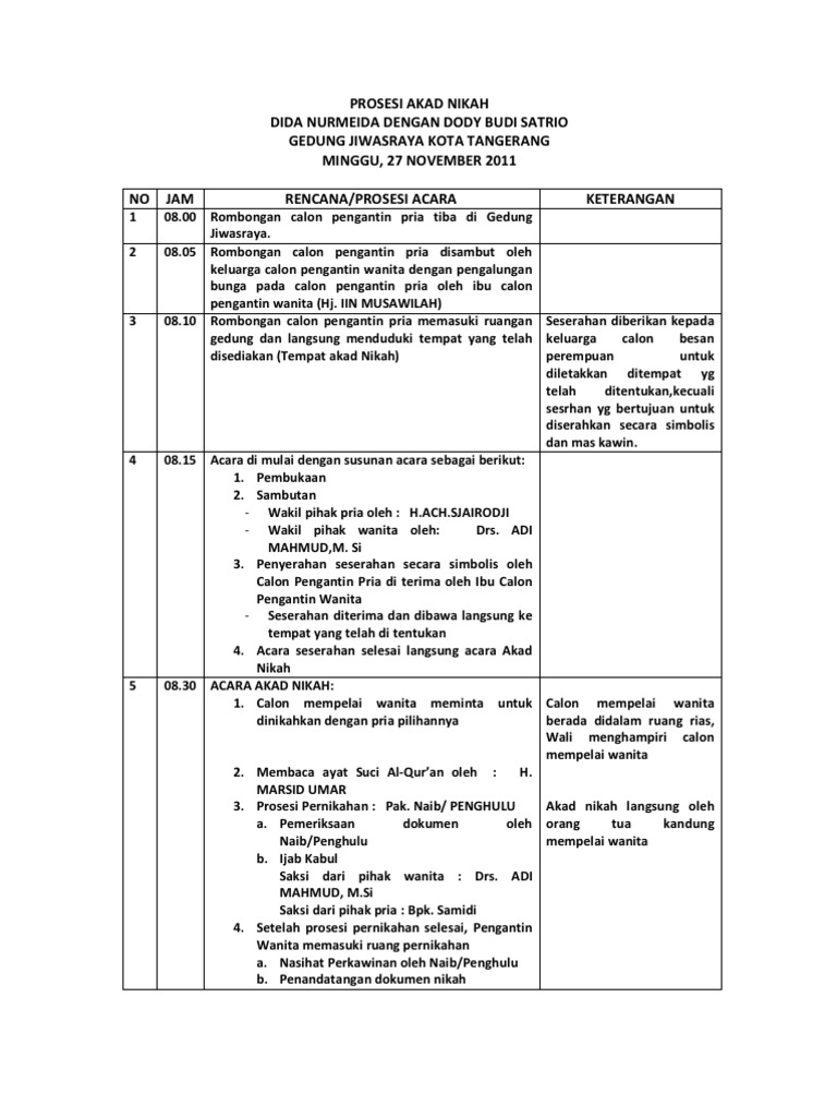 - Rundown Akad Nikah Ijab Kabul , Buku Panduan Pernikahan Yumi & Yasin, Biotrop, 22 Februari 2015 Run Downacara Akad Nikah Pj: