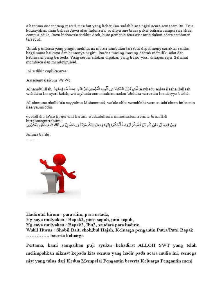 Sambutan Pernikahan Bahasa Arab : Contoh Pidato Bahasa Jawa Dalam Sambutan Penerimaan Pengantin Laki Laki Desa Sendang